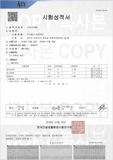 | deflection rate | Mm | 0.008 | KS F 2374 | ||