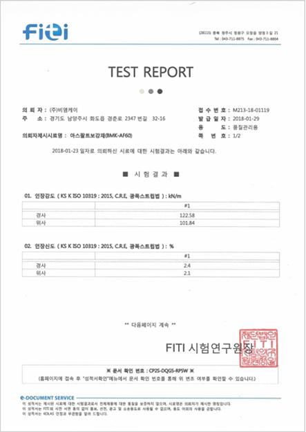 | tensile strength | kN/m | 60/60 | 100/100 | 120/120 | KS K ISO 10319:2015,CREwide strip |