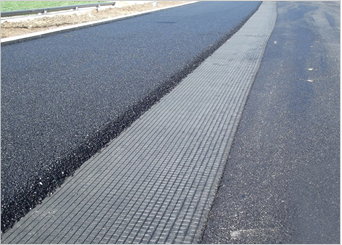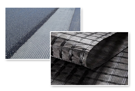 Reinforced composite combined with E-glass Grid and Bitumen coating. The combined reinforcement works as a framework for reinforcing the asphalt layer and prevents cracking of the foundation ground by increasing the tensile force of the asphalt layer.