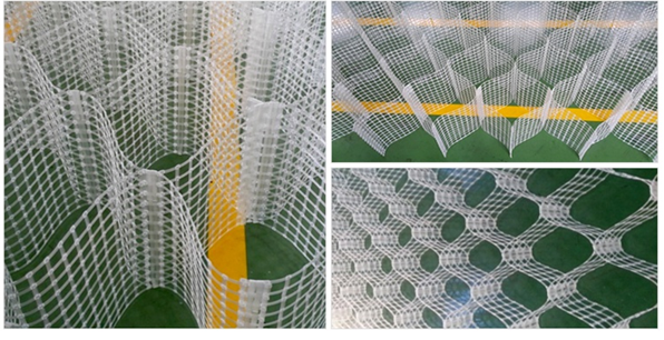 Geocell is a honeycomb three-dimensional geosynthetic reinforcement material that is filled with a filling material in the unit cell.
