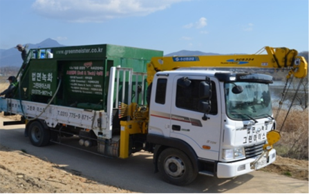 This is the first greening technology in Korea in order to powder vegetation base material that plants can grow optimally and rice straw can prevent the phenomenon in summer.