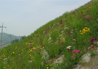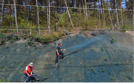It is a greening method that can replace seed-spray, rice straw, line sod and block sod greening. Nano (1 meter of 1 billion nanometers) obtained by processing natural red clay has strong penetration and supplies nutrients deep into rock mass.