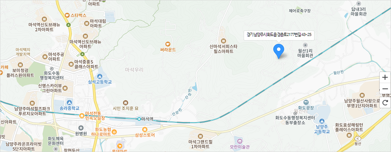 Gyeongchun-ro 2177bungil, 43-25, Hwado-eup, Namyangju-si, Gyeongsnagbuk-do.
