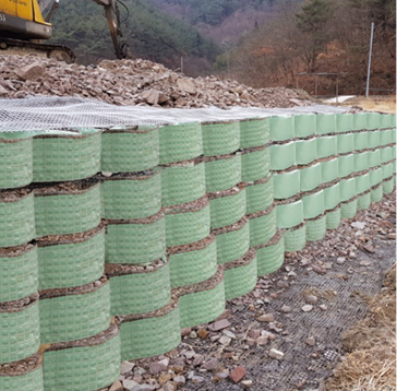 It is a construction method used in civil engineering, where the cells of honeycomb-shaped fiber materials are filled or installed with materials such as vegetation, stones, flowable concrete, or mortar to promote vegetation growth and cover slopes.