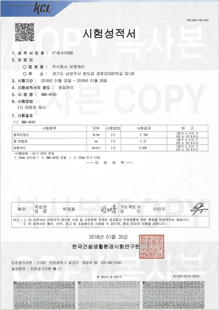 - 화학적 복원성, 열복원성, 개열내구성, 저온에서 크랙방지의 효과가 뛰어납니다.
