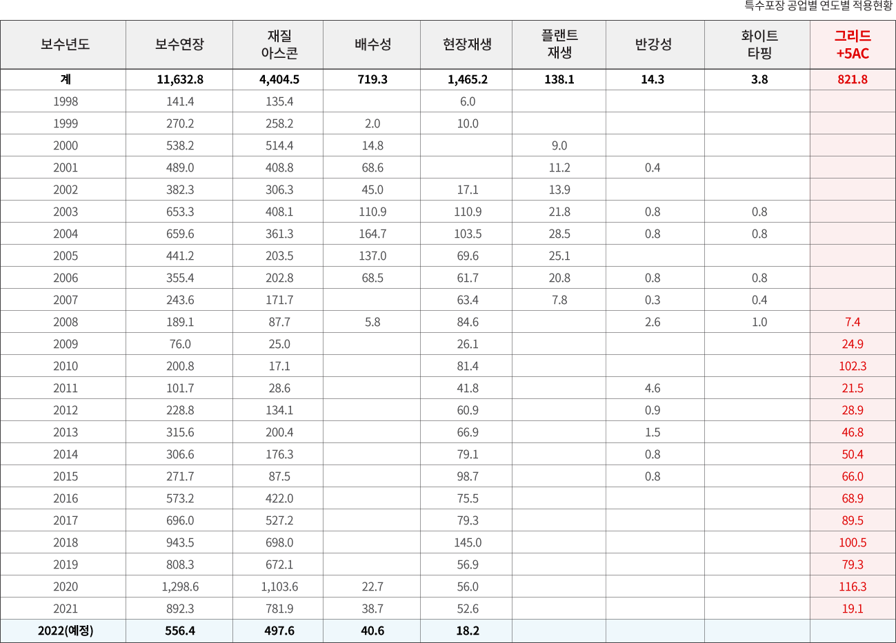 그리드+5AC 공법은 2008년부터 시험 포장을 적용하며 추적조사를 지속적으로 수행하였다.