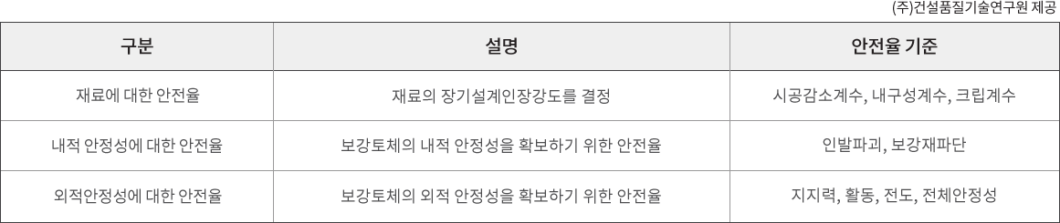 1. 보강토 옹벽의 설계시 사용하는 안전율 기준